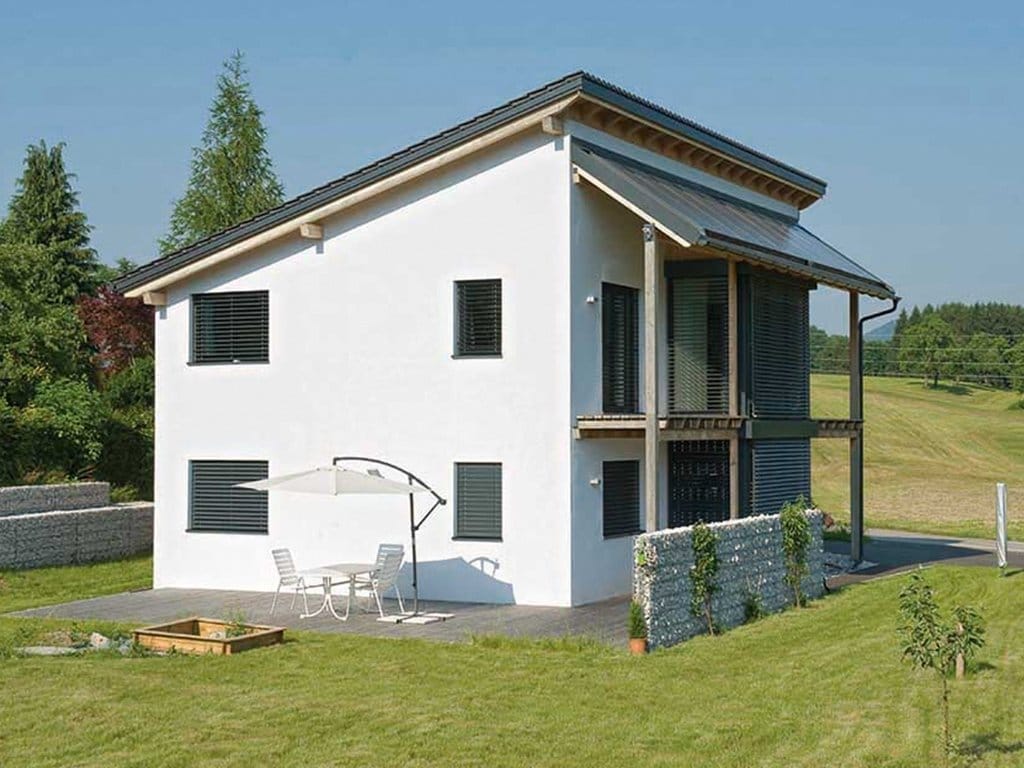 Neubau mit Sturzkasten, im Bereich des Wintergartens mit Sichtblende.